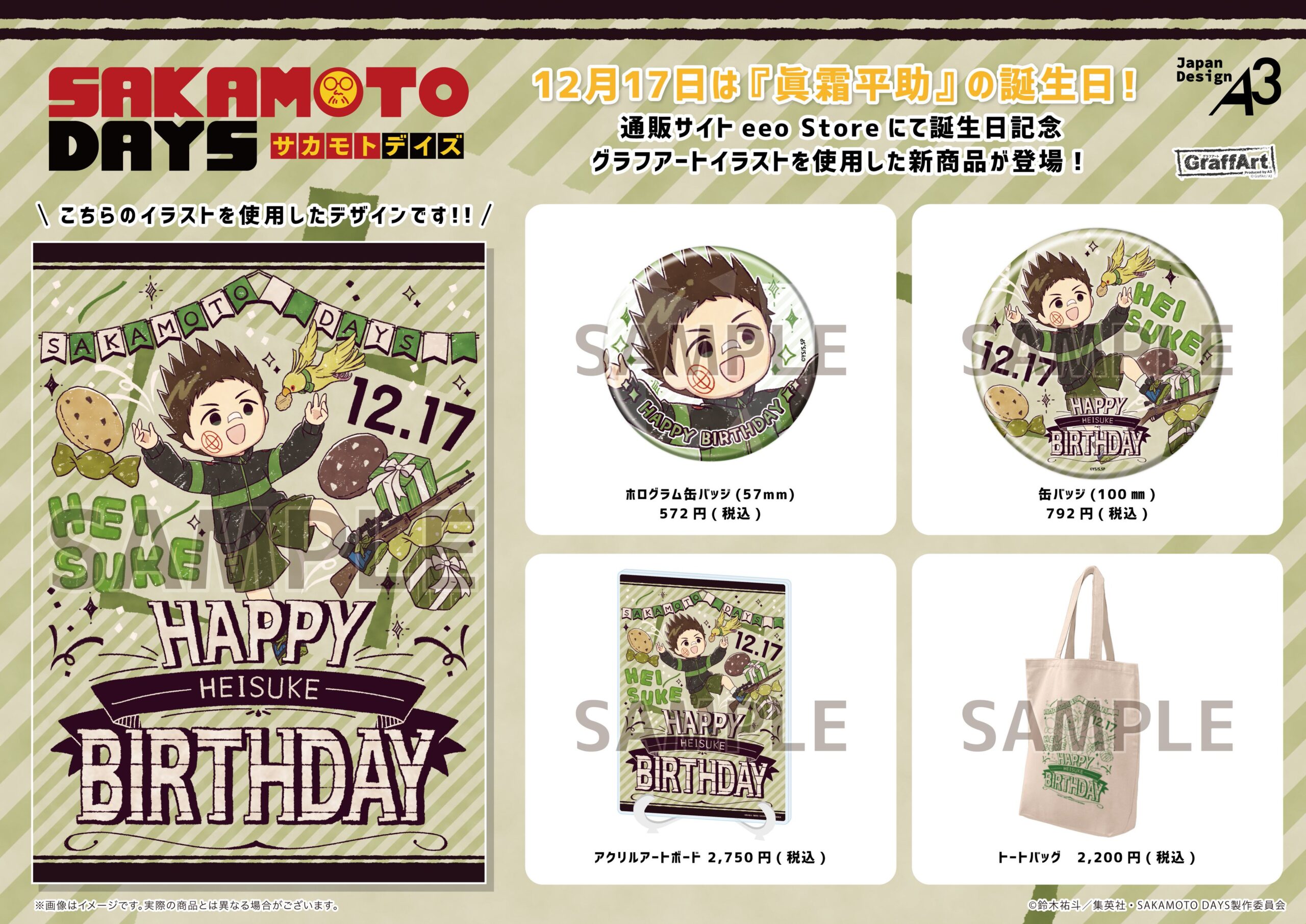 TVアニメ『SAKAMOTO DAYS』誕生日記念グラフアートイラスト 眞霜平助 SAKAMOTO DAYS Twitter Facebook はてブ Pocket LINE コピー 2025.12.17 ※本ページにはプロモーションが含まれます 詳しい情報はこちら↓ eeo Store