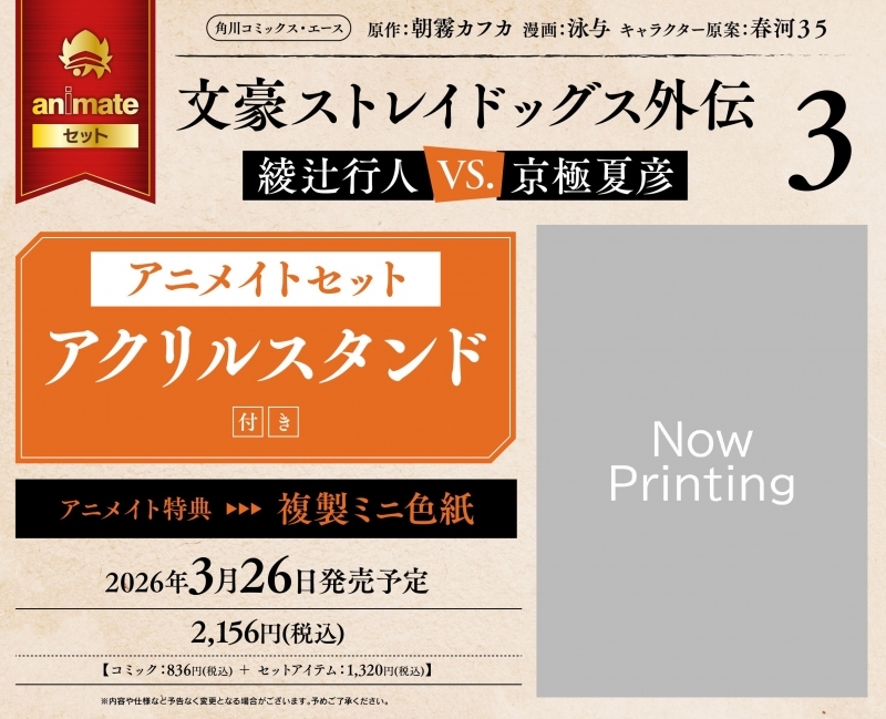 【コミック】文豪ストレイドッグス外伝 綾辻行人 VS. 京極夏彦(3) アニメイトセット【アクリルスタンド付き】 文豪ストレイドッグス Twitter Facebook はてブ Pocket LINE コピー 2026.02.10 ※本ページにはプロモーションが含まれます アニメイトオンライン